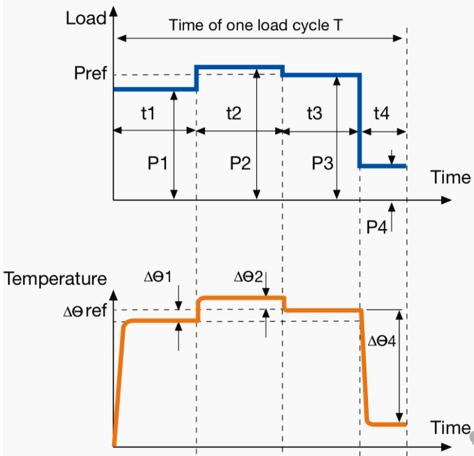 For this type of duty cycle, a constant load that appropriately selected and based on the duty cycle type S1 should be used as a reference value for the discrete load “Pref”. Load characteristics are really the various duty cycles of the motor at specific time intervals and constant loads, which vary in terms of start and stop times and braking system applications. Continuous duty cycles are ideally suited for machines that need to perform load-driven operations for long time period, while other types of duty cycles have their own unique waveforms and cycle duration factors. Therefore, load characteristics are an important parameter that must be considered when selecting a motor.