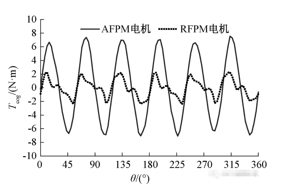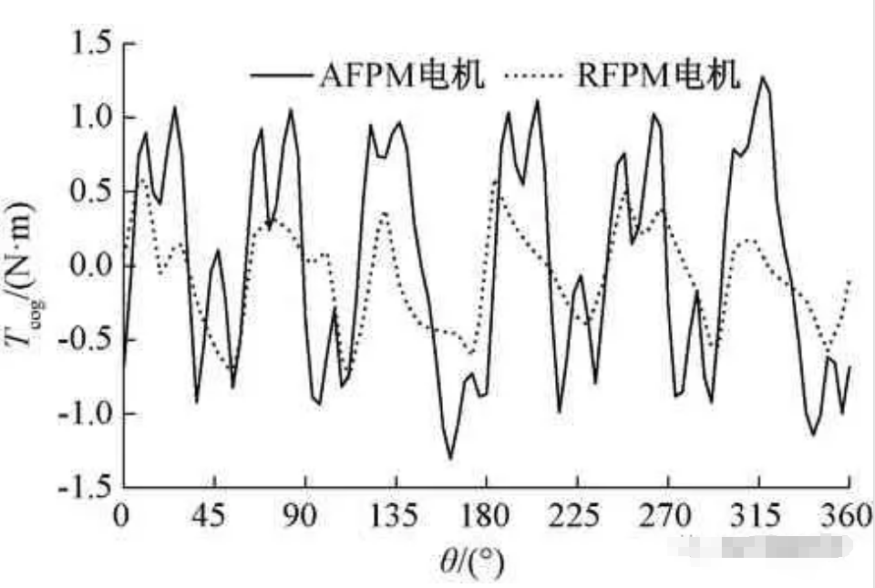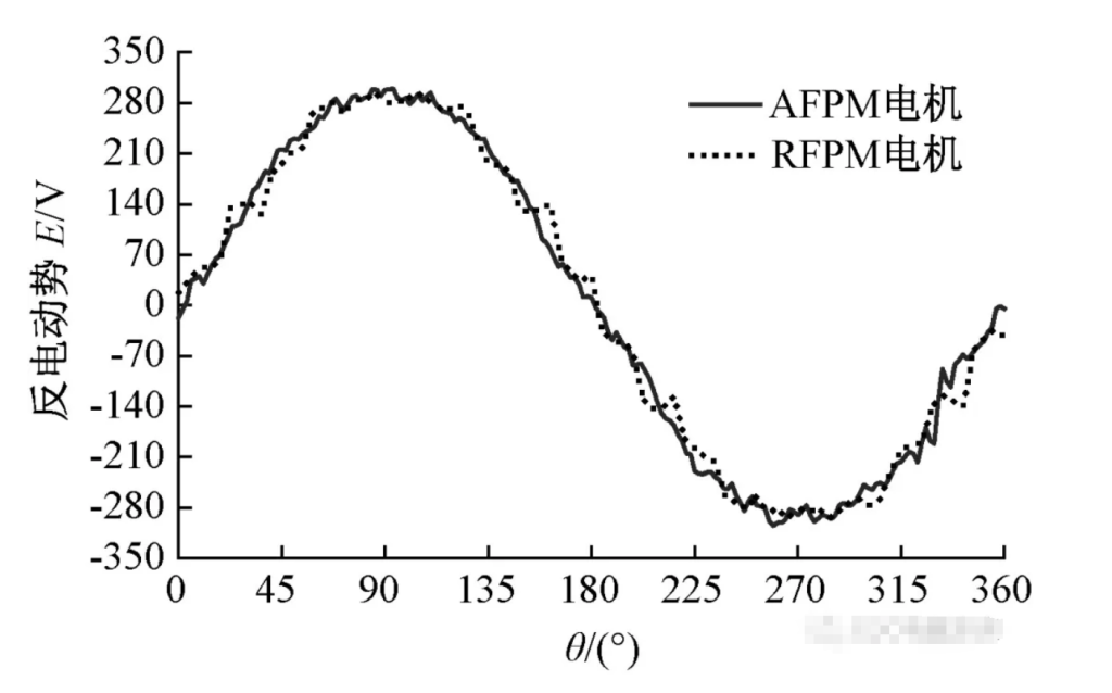 In summary, the power density of the AFPM motor is 14.97% higher than that of the RFPM motor, and the effective material used in the AFPM motor is less under the same power transmission. In addition, the no-load back EMF of AFPM motor has less harmonic content and better sinusoidal waveform. But AFPM motor also has the disadvantages of cogging torque and torque fluctuation, which has a great impact on the vibration and noise of the motor.