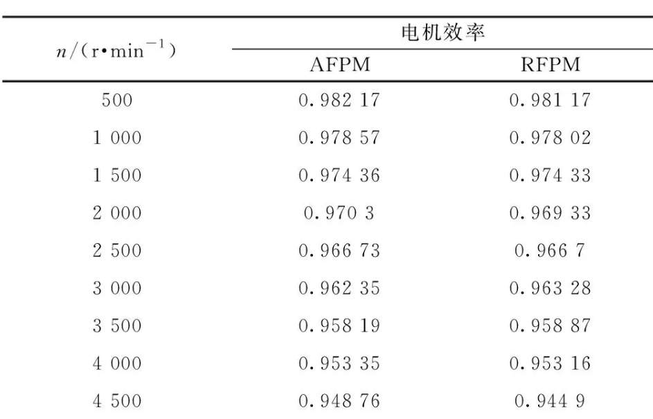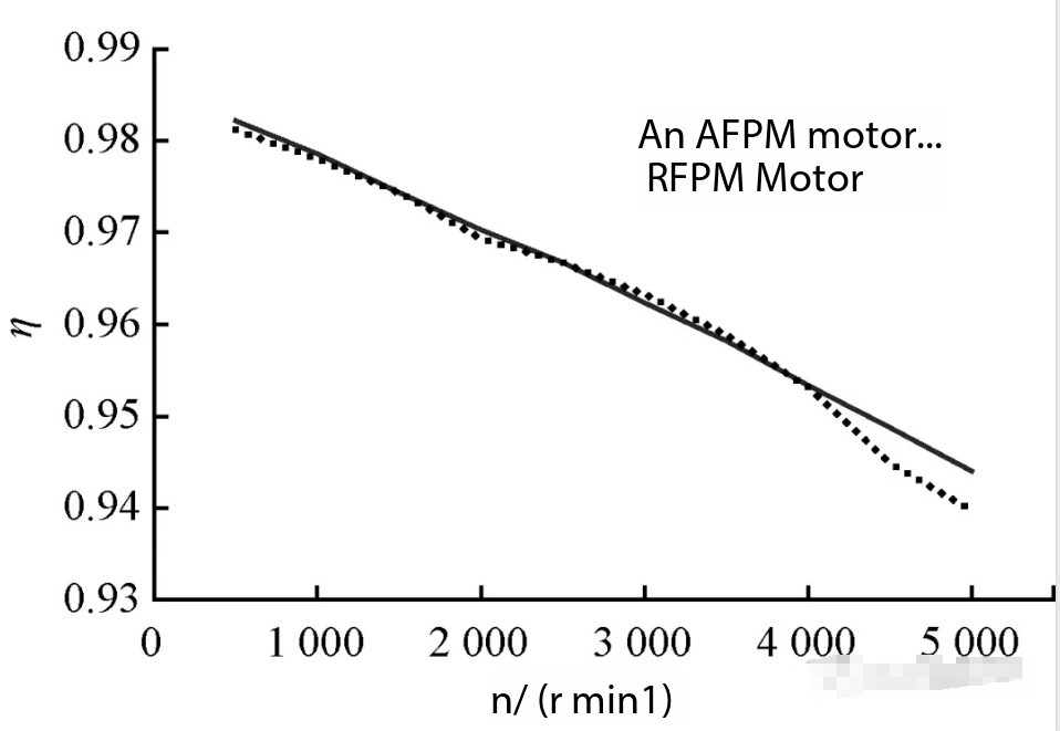 As can be seen from Figure 13, when the speed is between 500 r / min and 4 000 r / min, the efficiency of the two different topologies is basically similar. When the speed is greater than 4 000 r / min, the frequency will increase with the increase of the speed, and the stator and rotor iron core will be highly saturated. In addition, the eddy current loss of RFPM increases rapidly with the increase of the stator and rotor materials used in RFPM. AFPM motor. From Table 4, we can see that the efficiency of two different topologies is not much different at different speeds.