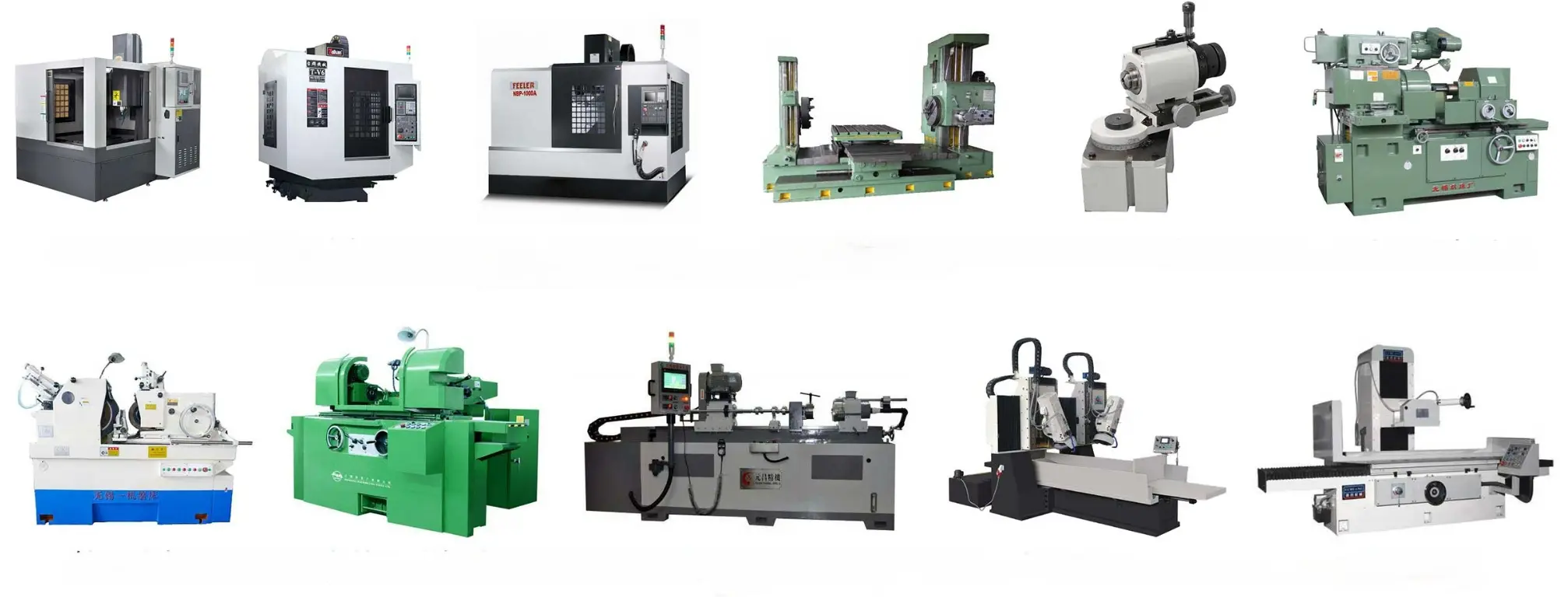 Engraving and milling machines, drilling and tapping machines, machining center machines, boring machines, tool grinding machines, internal cylindrical grinding machines, external cylindrical grinding machines, internal and external cylindrical grinding machines, bearing grinding machines, thread grinding machines, deep hole internal cylindrical grinding machines, guideway grinding machines, surface grinding machines and so on.